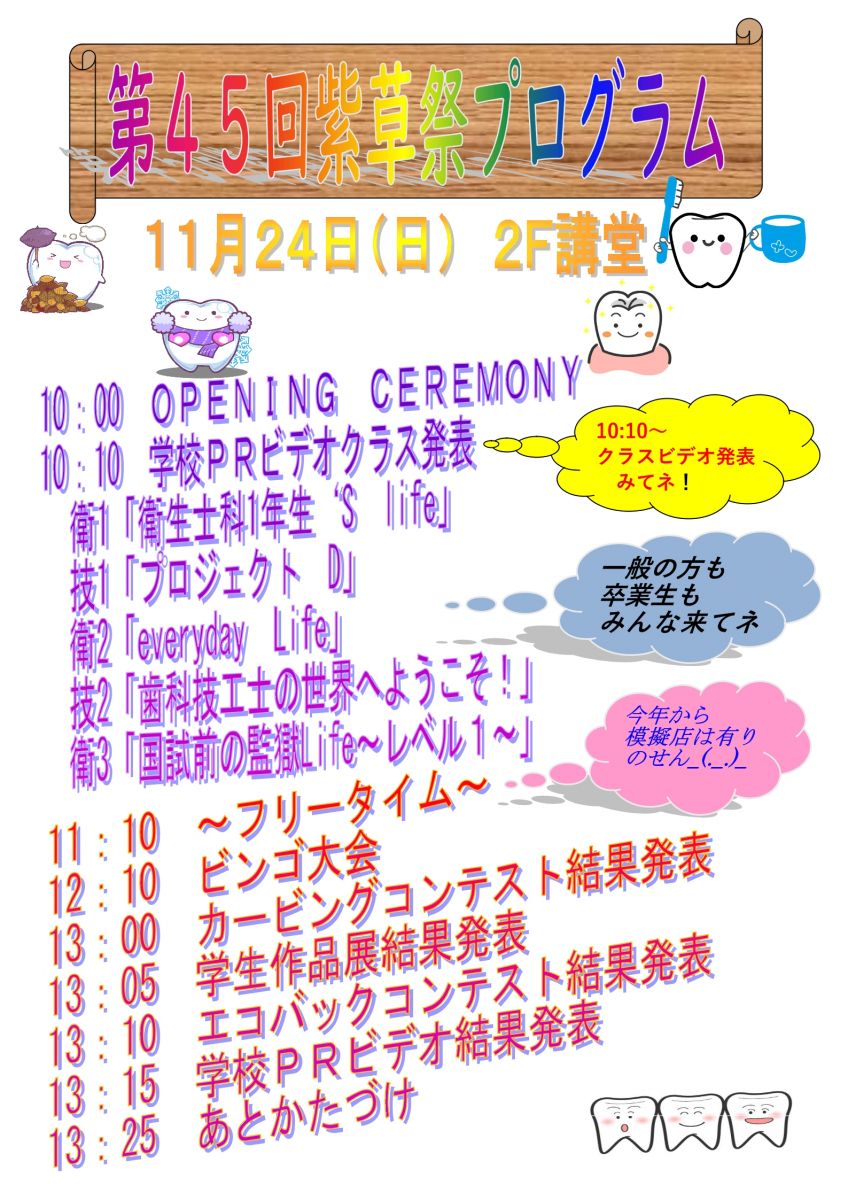 今年も京都歯科医療技術専門学校の学園祭「紫草祭」(むらさきさい)を実施します。